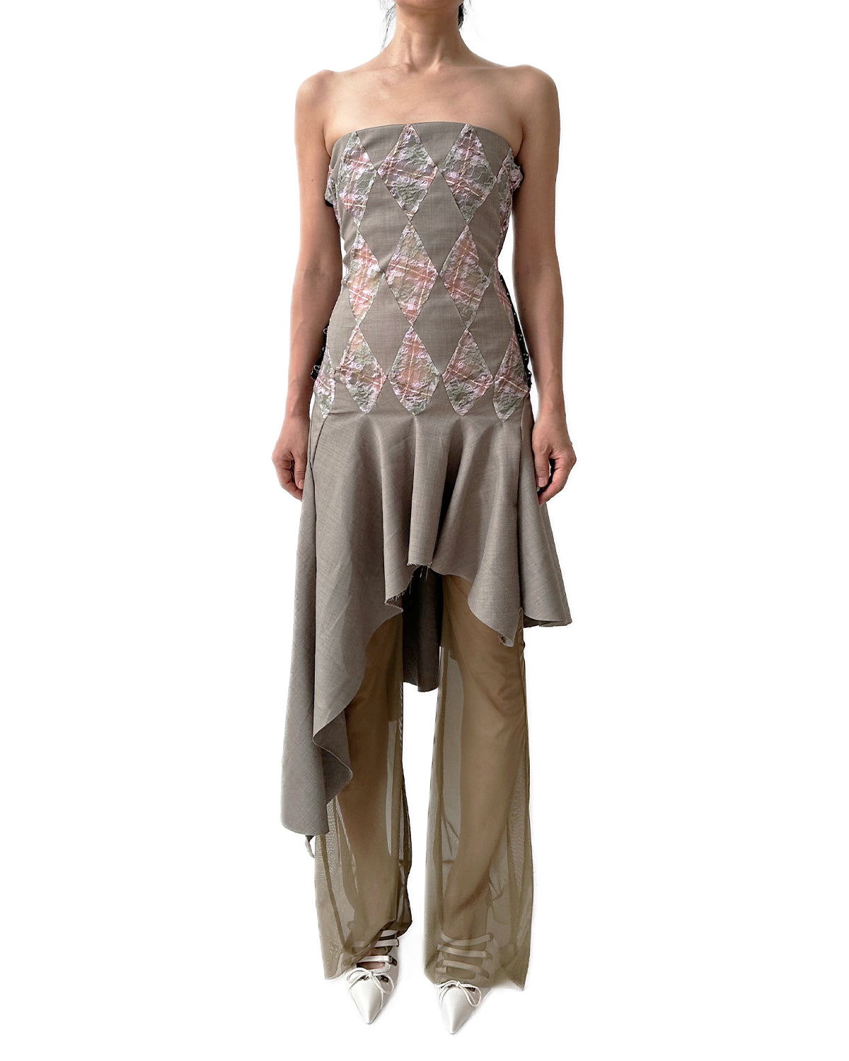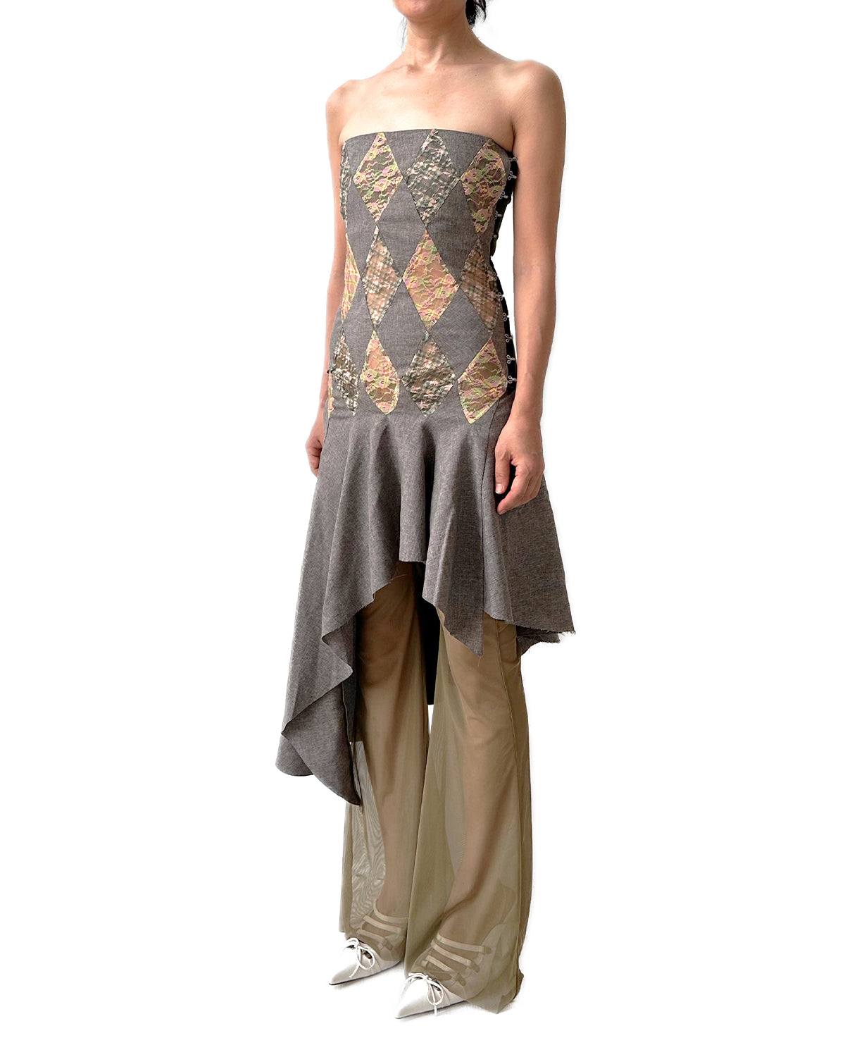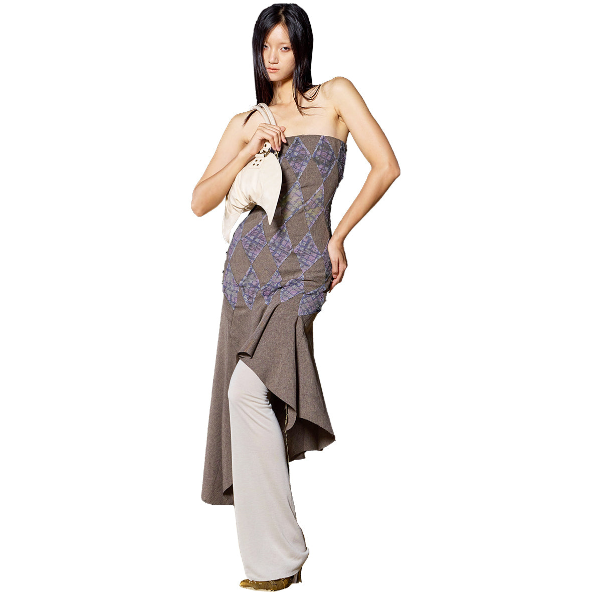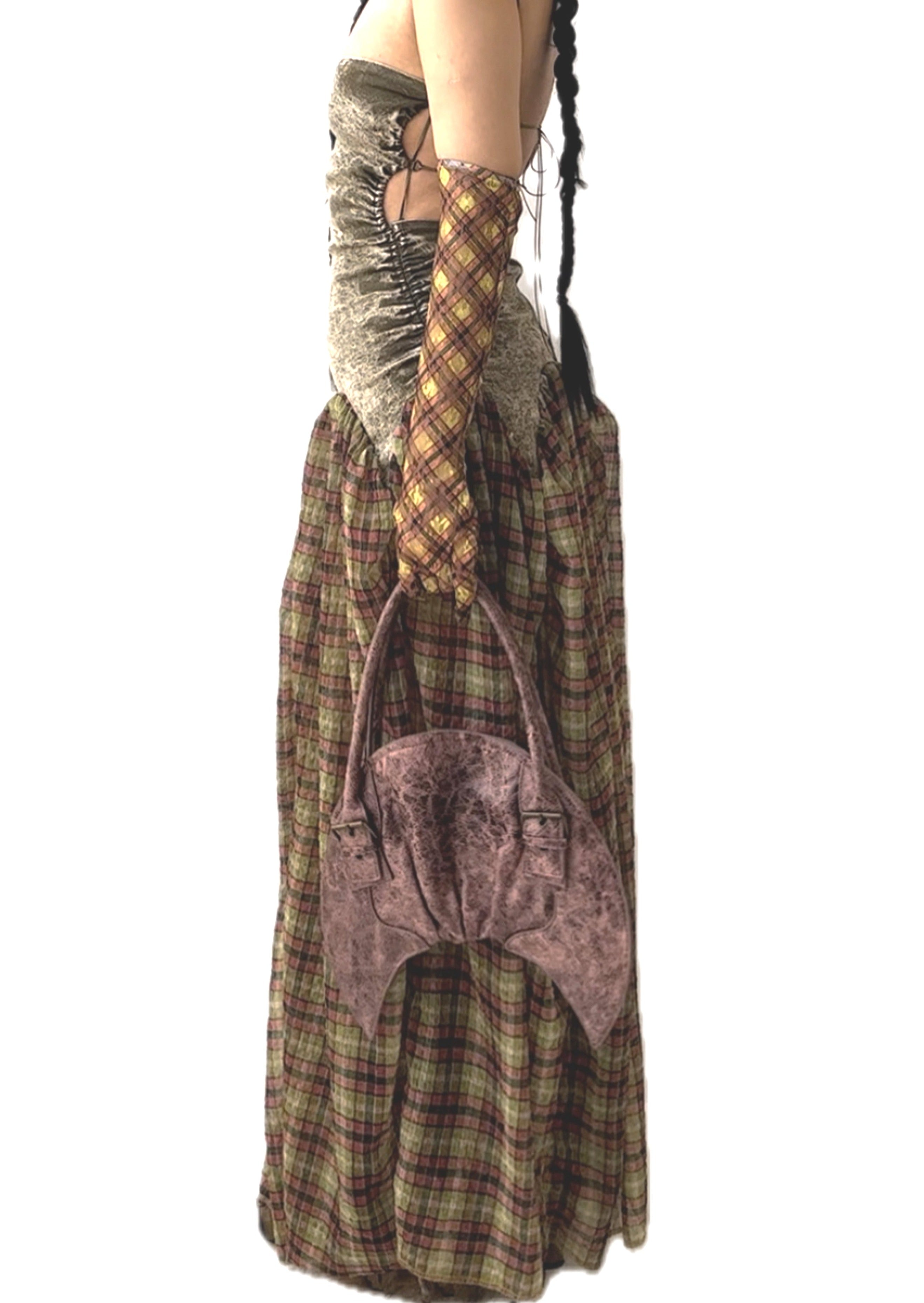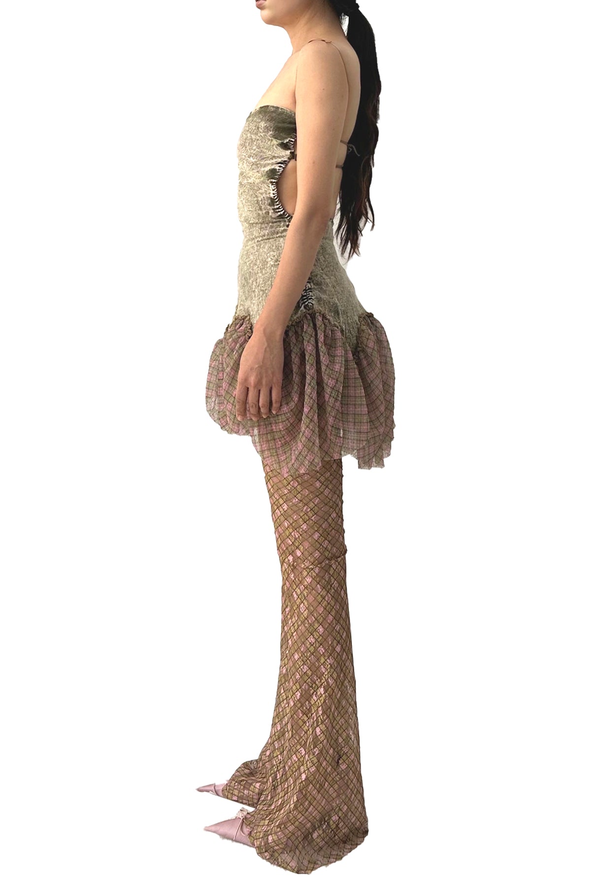 Plaid Puff Chiffon Asymmetrical Dress Fenlü