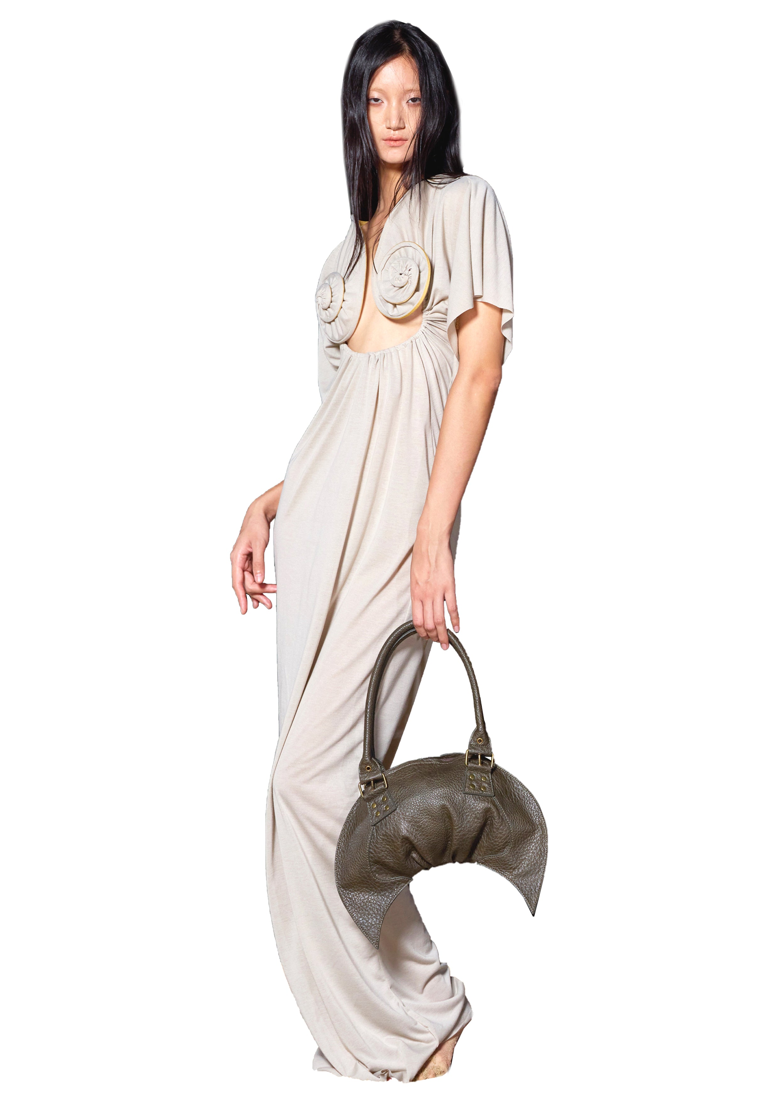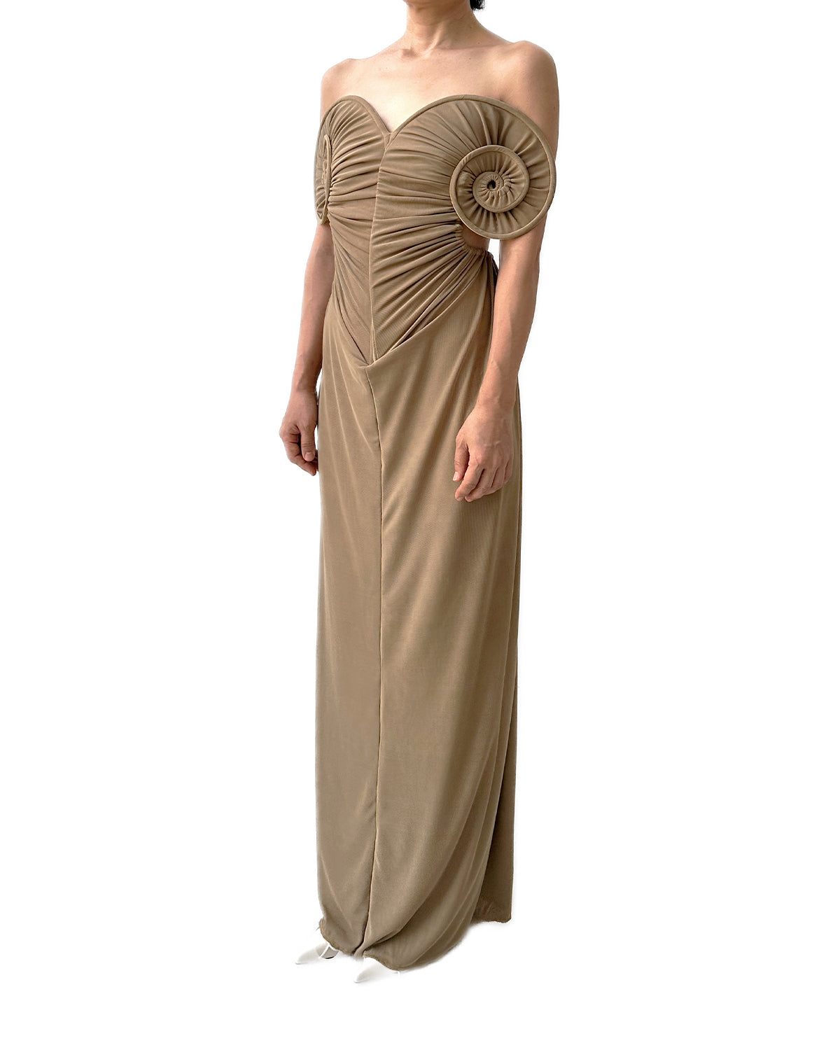 Draped Sea Shell Swirl Maxi Gown Khaki