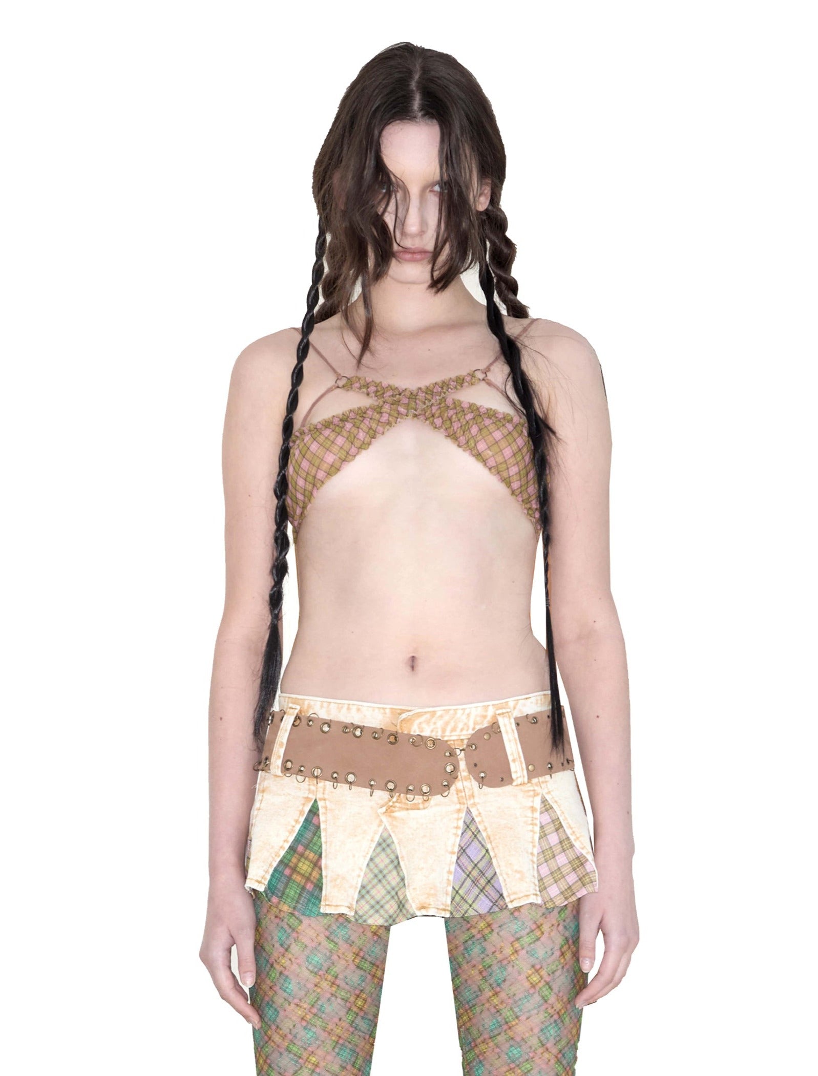 Mesh Bowkini Top and Bottom Set Lunar Tartan