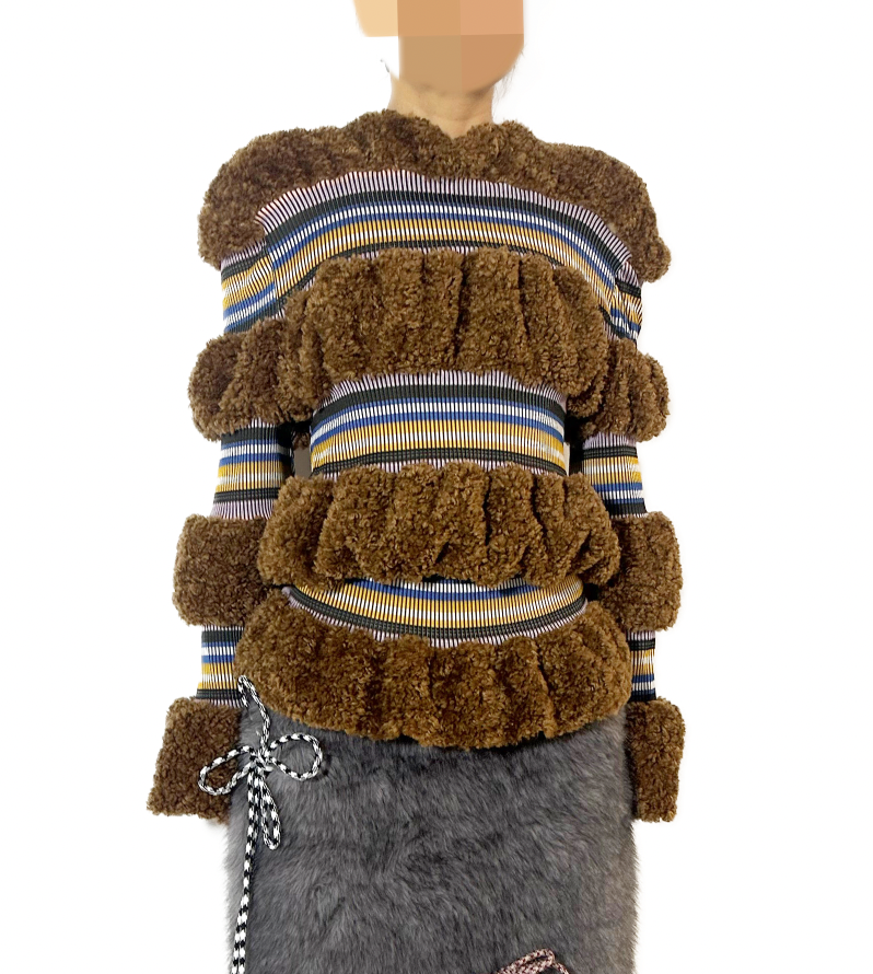 Faux Fur Patchwork Stripe Jacket Top