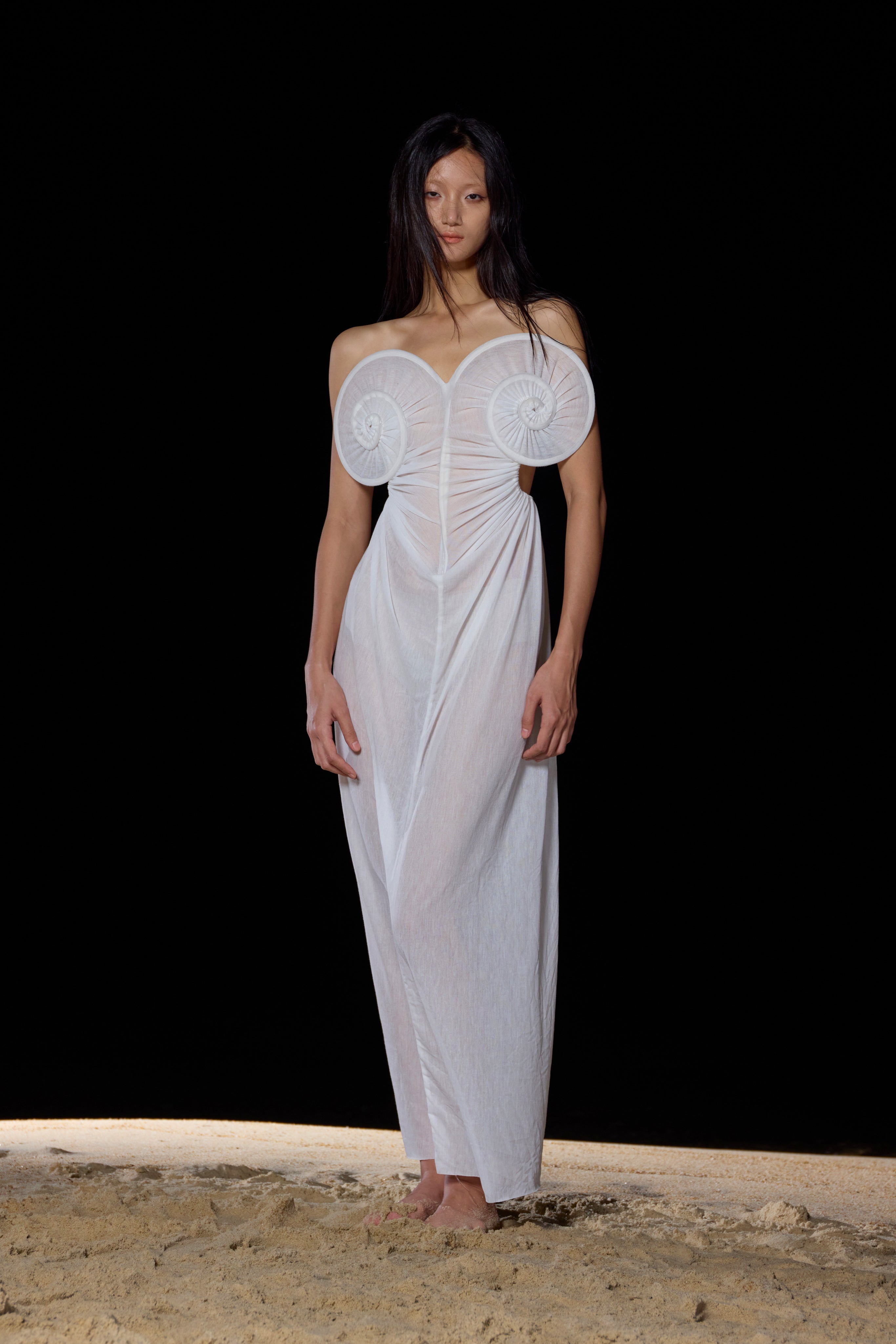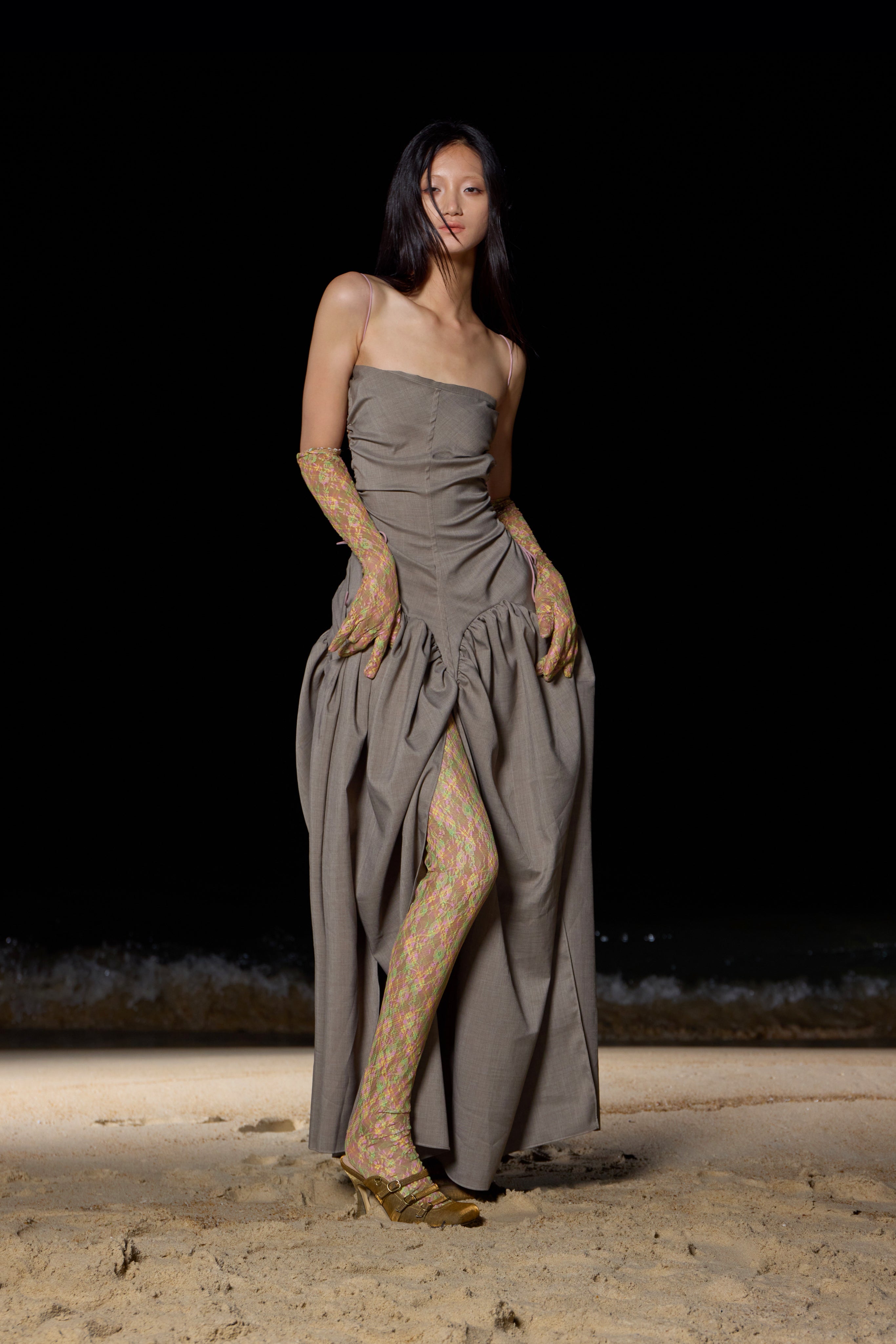 The Spring/Summer 2025 collection is a whimsical exploration of daydreams that emerge while working at an office desk. This season, we dive deep into the mesmerizing world beneath the waves, drawing heavy inspiration from the textures and silhouettes of sea creatures. The collection features a palette of toned-down colors reminiscent of the mysterious beauty found under the sea.